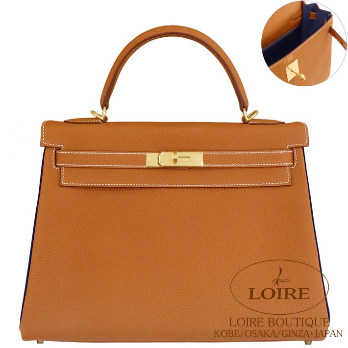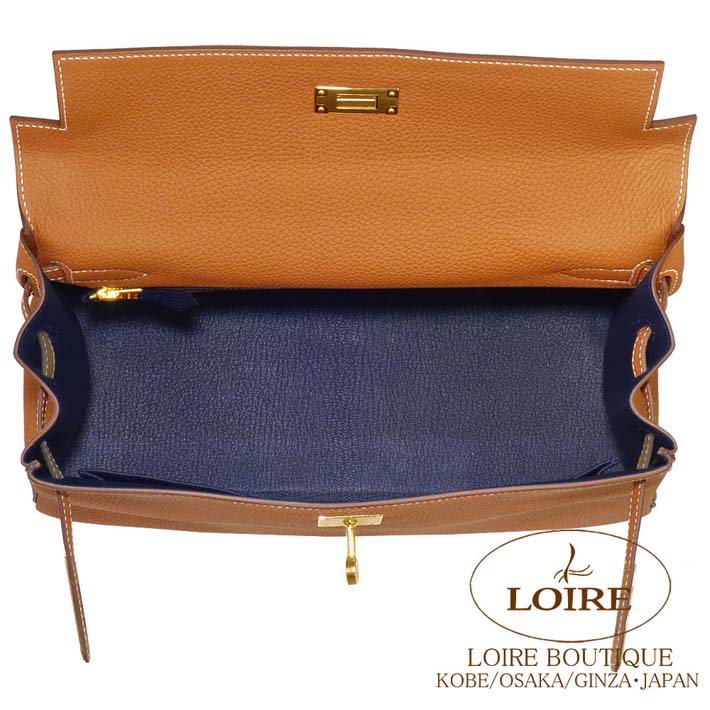 HERMES Kelly 32cm Retourne Personal Order Togo GOLD(37)/BLEU NUIT(2Z) Champagne Gold hardware