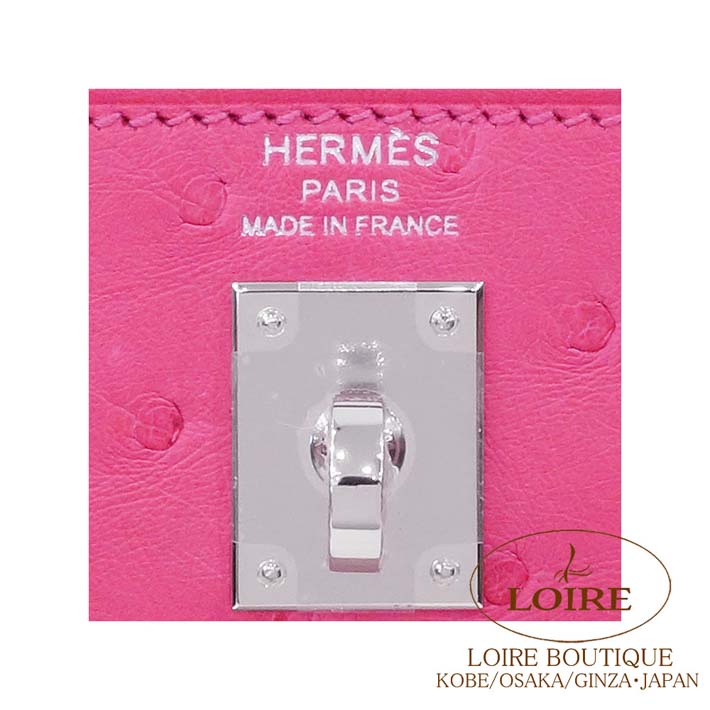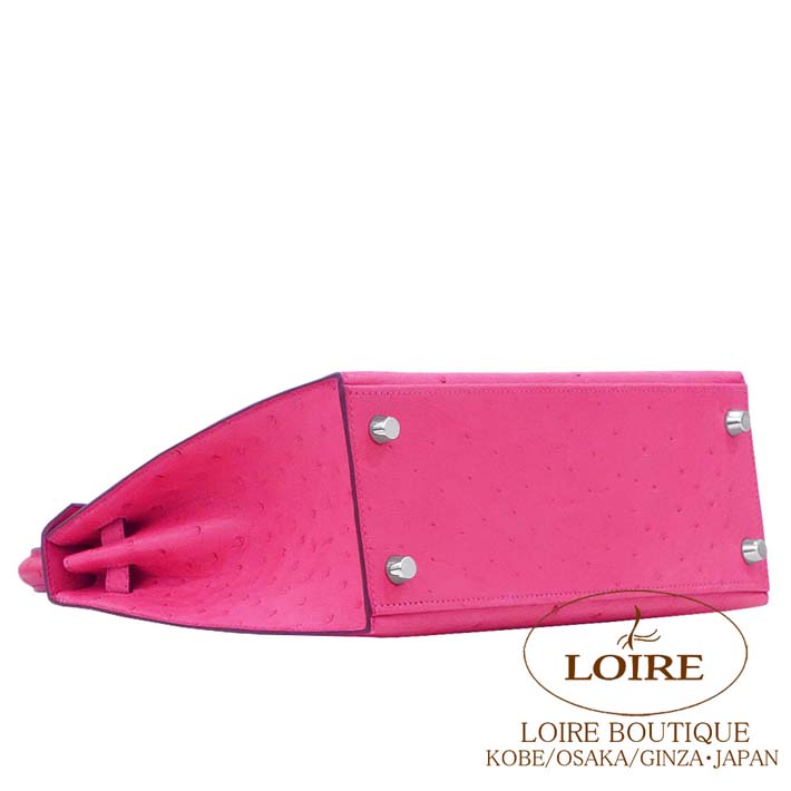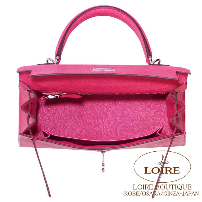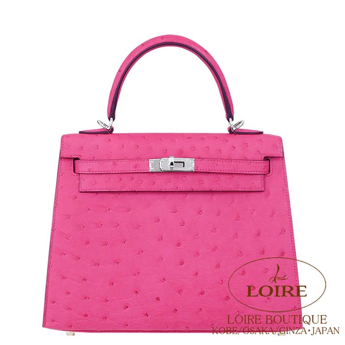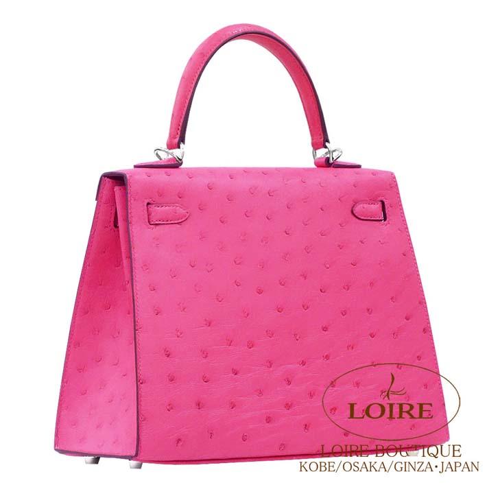 エルメス ケリー 25cm 外縫 オーストリッチ ローズティリアン シルバー金具