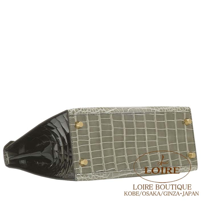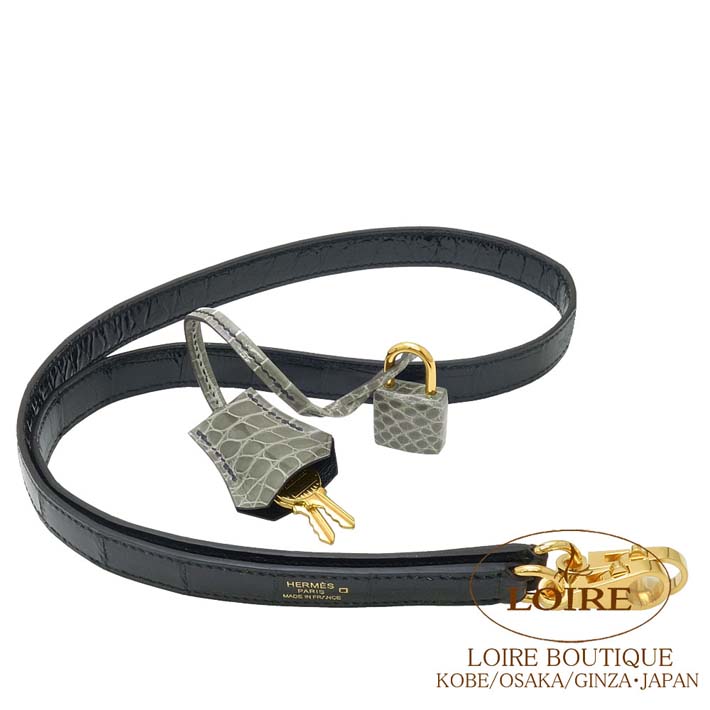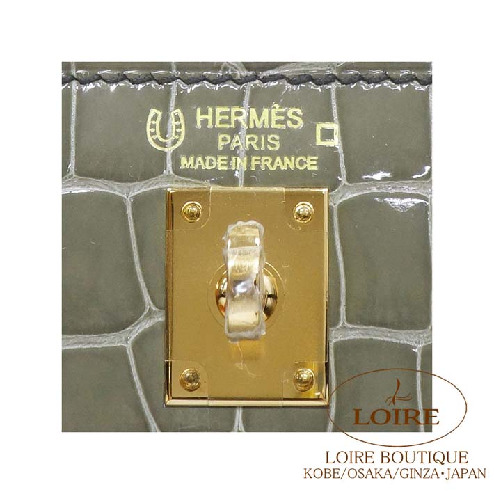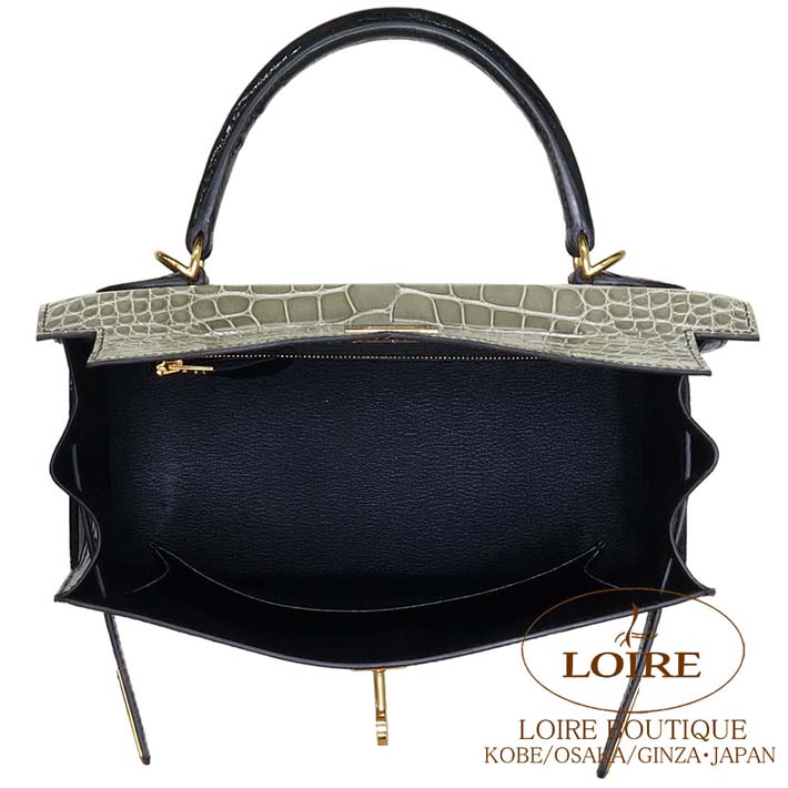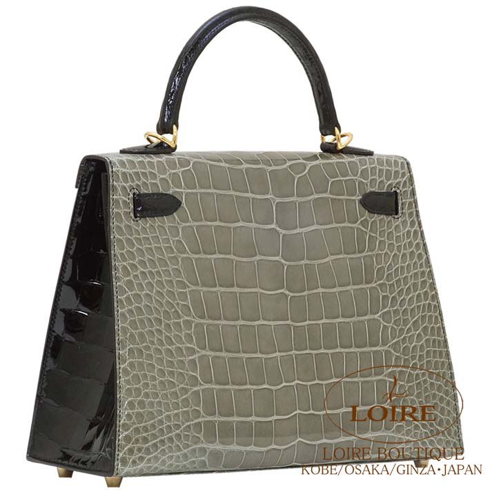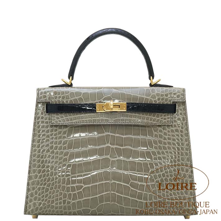 HERMES Kelly 25cm Sellier Personal Order Alligator GRIS TOURTERELLE(81)/NOIR(89) Gold hardware