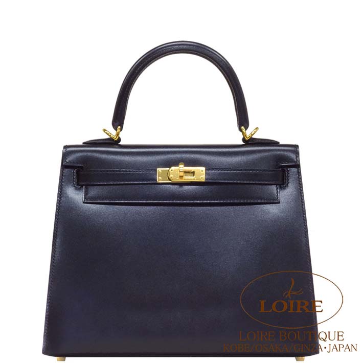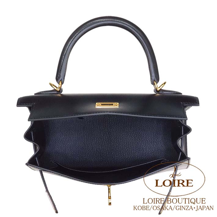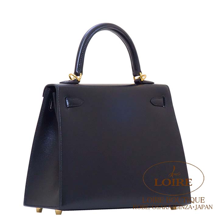 エルメス ケリー 25cm 外縫 ボックスカーフ クロ ゴールド金具