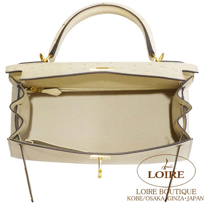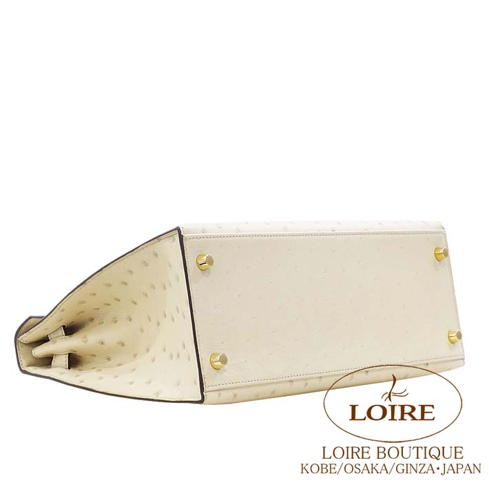 HERMES Kelly 28cm Sellier Ostrich PARCHEMIN(3C) Gold hardware