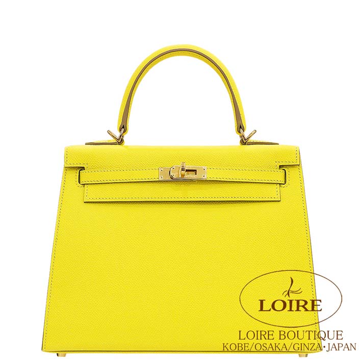 エルメス ケリー 25cm 外縫 エプソン ライム ゴールド金具