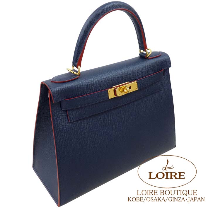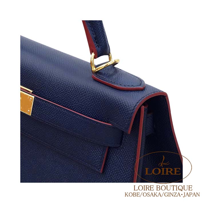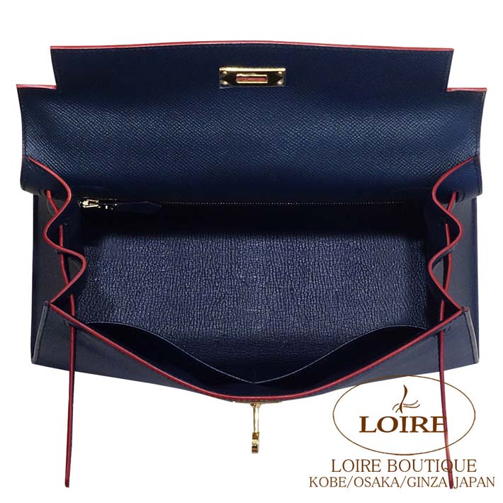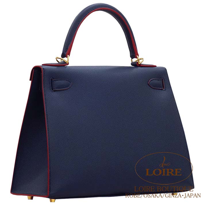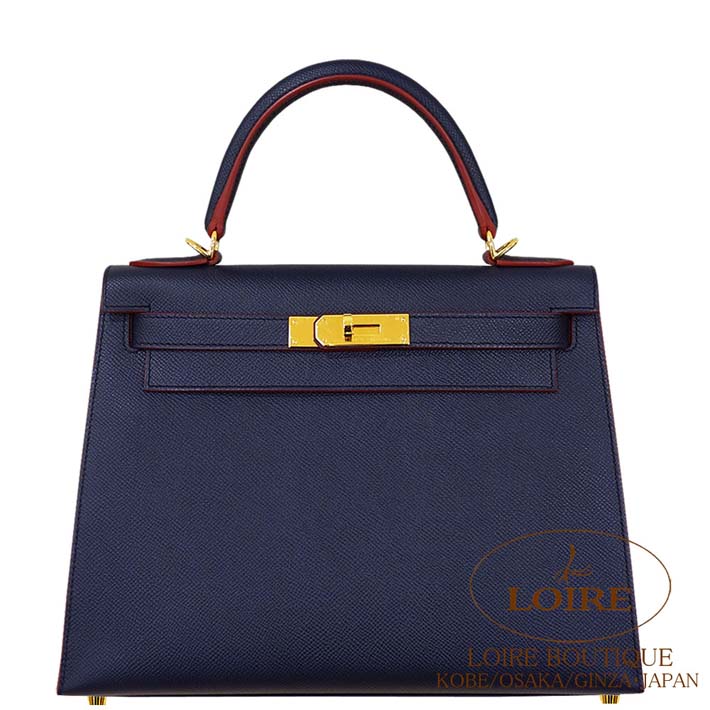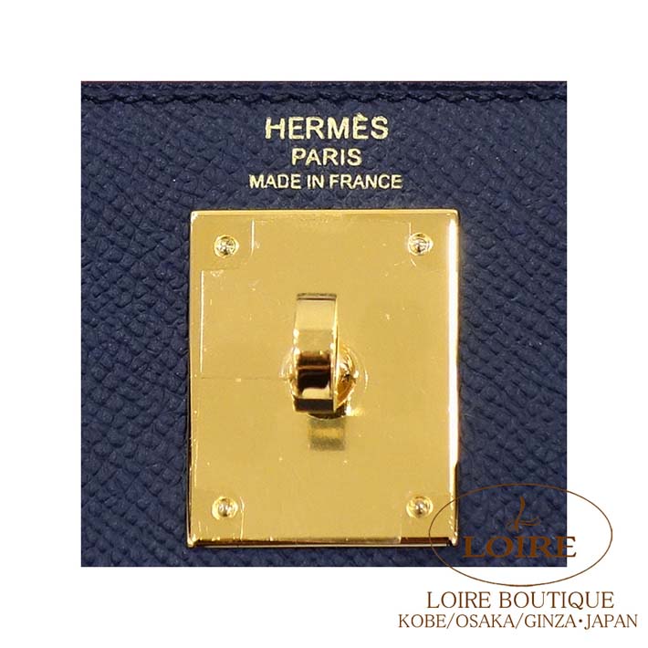 HERMES Kelly 28cm Contour Sellier Epson BLEU INDIGO(76) Gold hardware