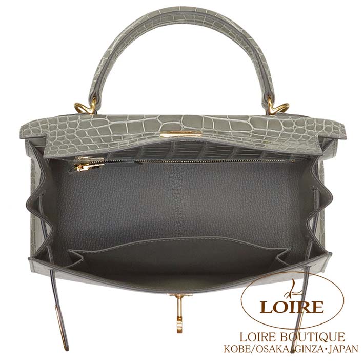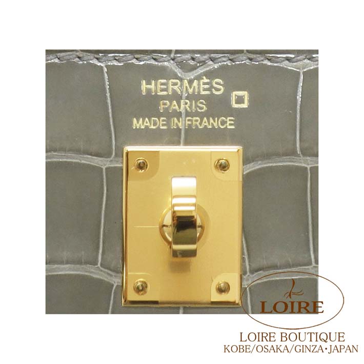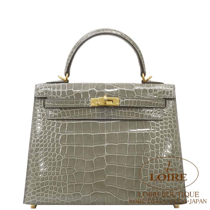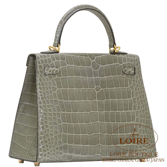 HERMES Kelly 25cm Sellier Alligator GRIS TOURTERELLE(81) Gold hardware