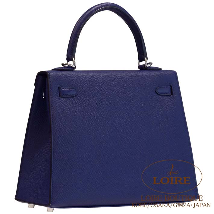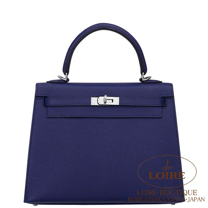 エルメス ケリー 25cm 外縫 エプソン ブルーアンクル シルバー金具