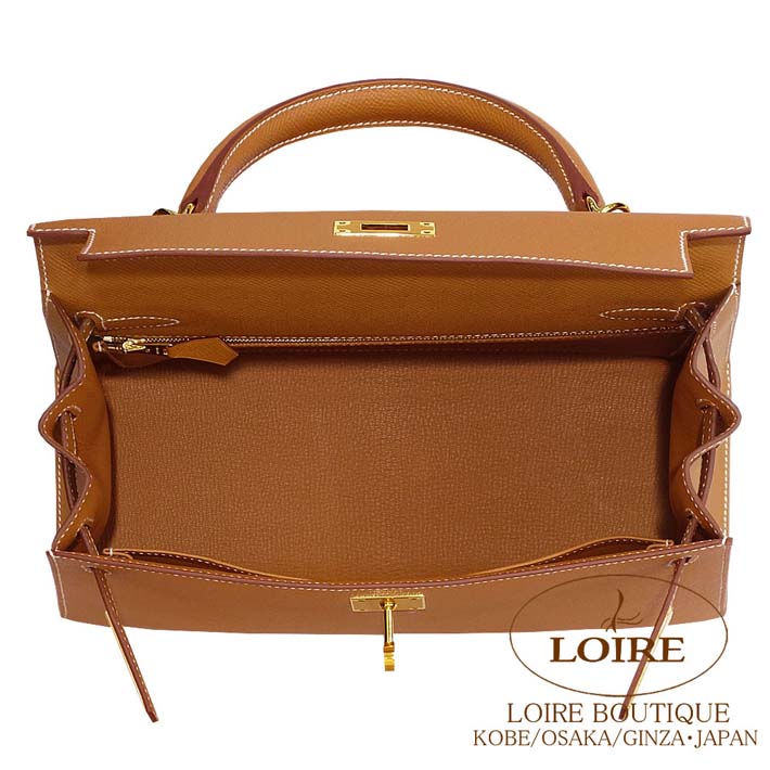エルメス ケリー 28cm 外縫 エプソン ゴールド ゴールド金具