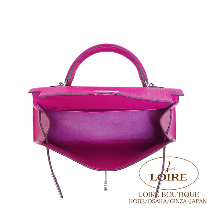 HERMES Kelly Mini 2 Epson ROSE POURPRE(L3) Silver hardware