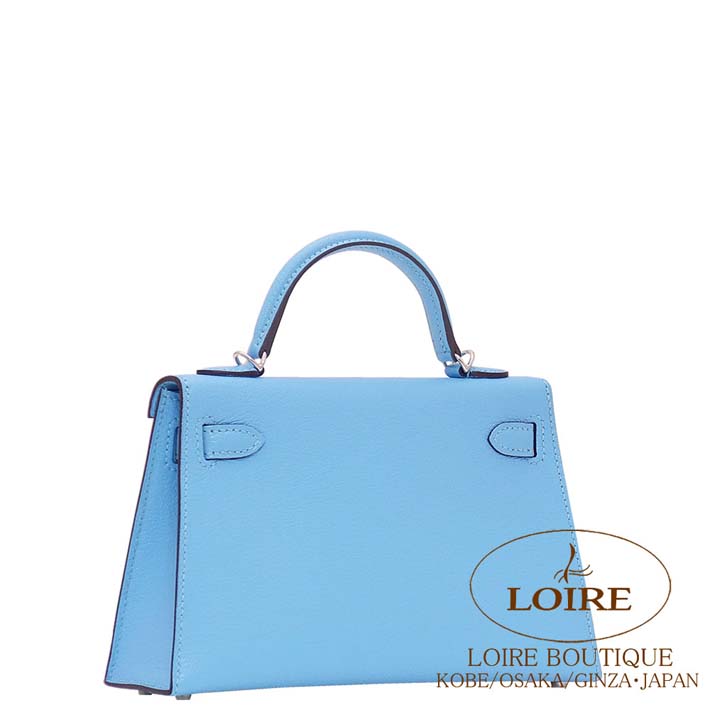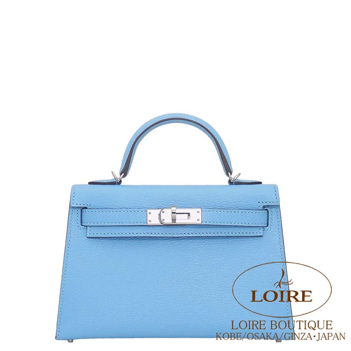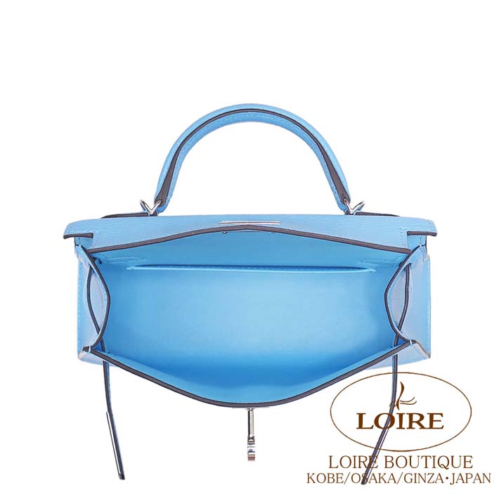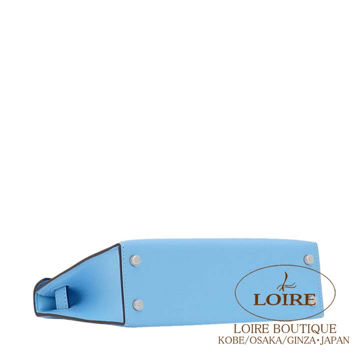 HERMES Kelly Mini 2 Chevre CELESTE(7N) Silver hardware