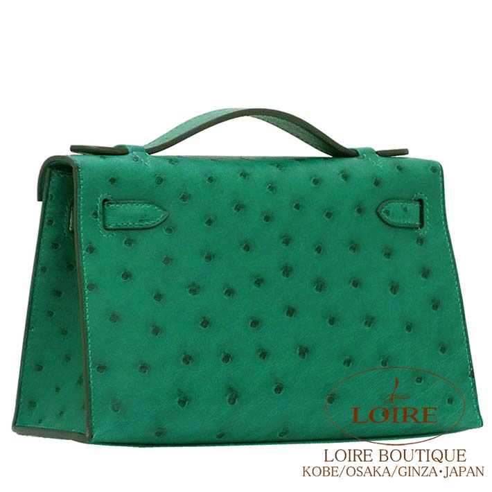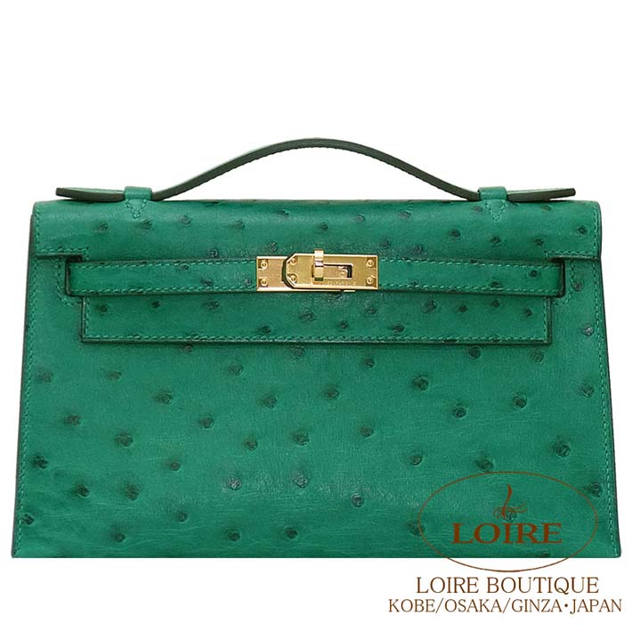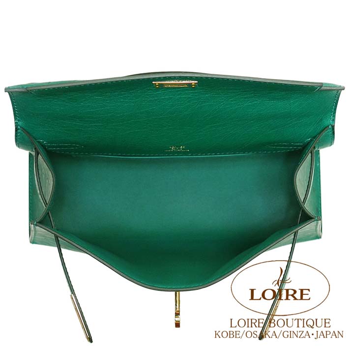 HERMES Pochette Kelly Ostrich VERT VERTIGO(U4) Gold hardware