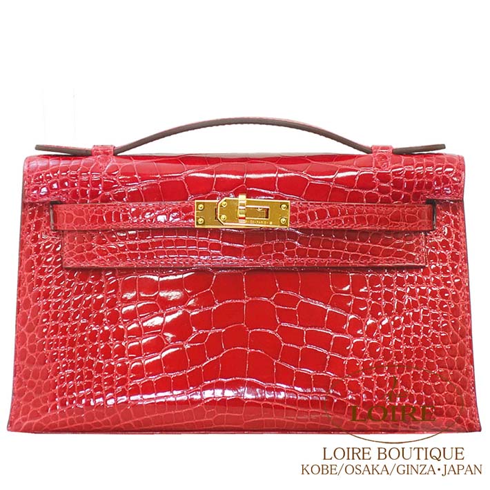 HERMES Pochette Kelly Alligator BRAISE(95) Gold hardware