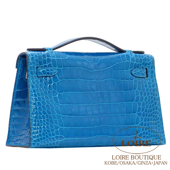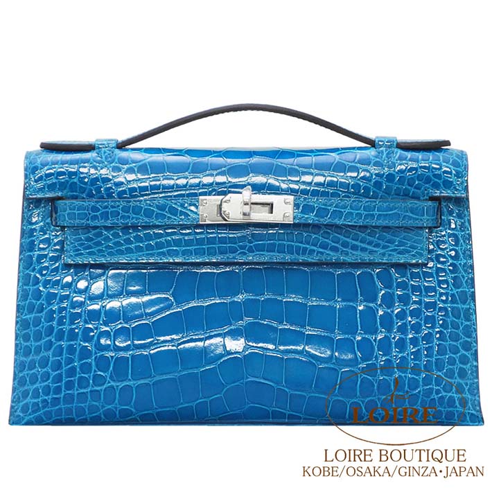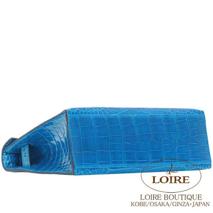HERMES Pochette Kelly Alligator BLEU IZMIR(7W) Silver hardware