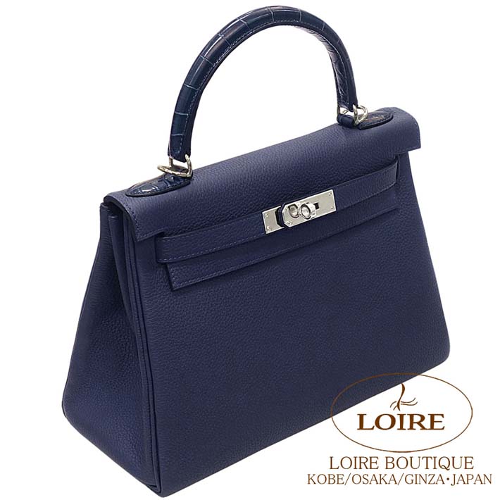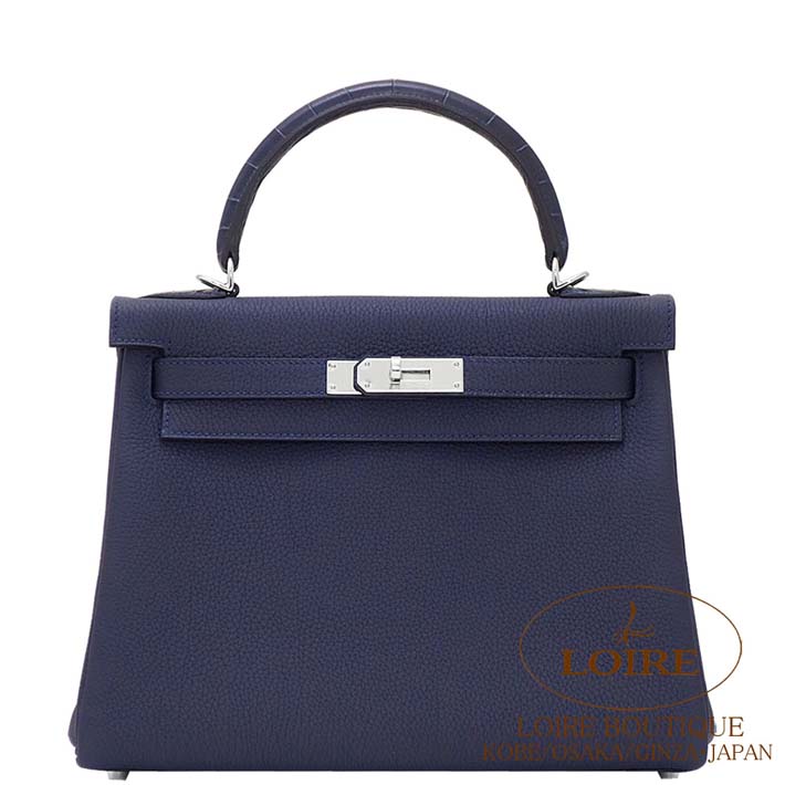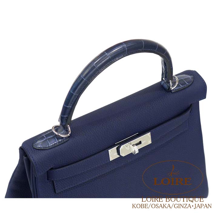 HERMES Kelly 28cm Touch Retourne Togo/Alligator Matte BLEU NUIT(2Z)/BLEU DE MALTE(7L) Silver hardware
