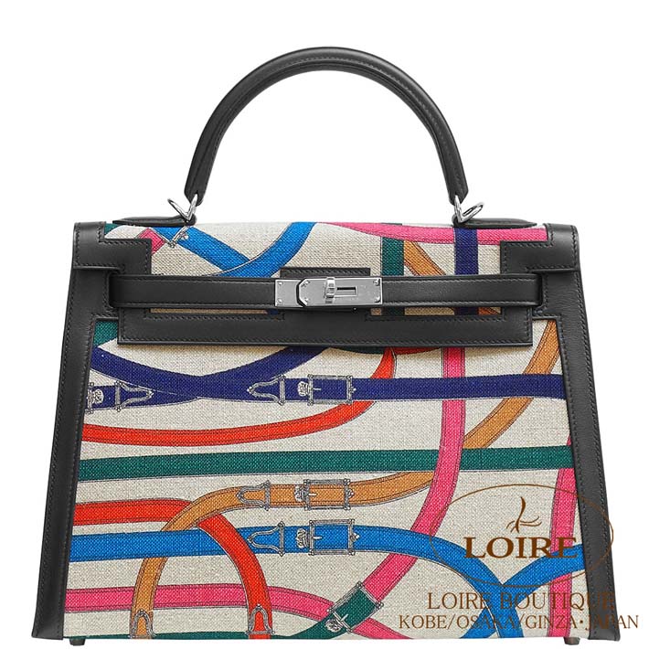 HERMES Kelly 32cm Sellier Toile H Berlin/Swift NOIR(89)/MULTICOLORE(00) Silver hardware