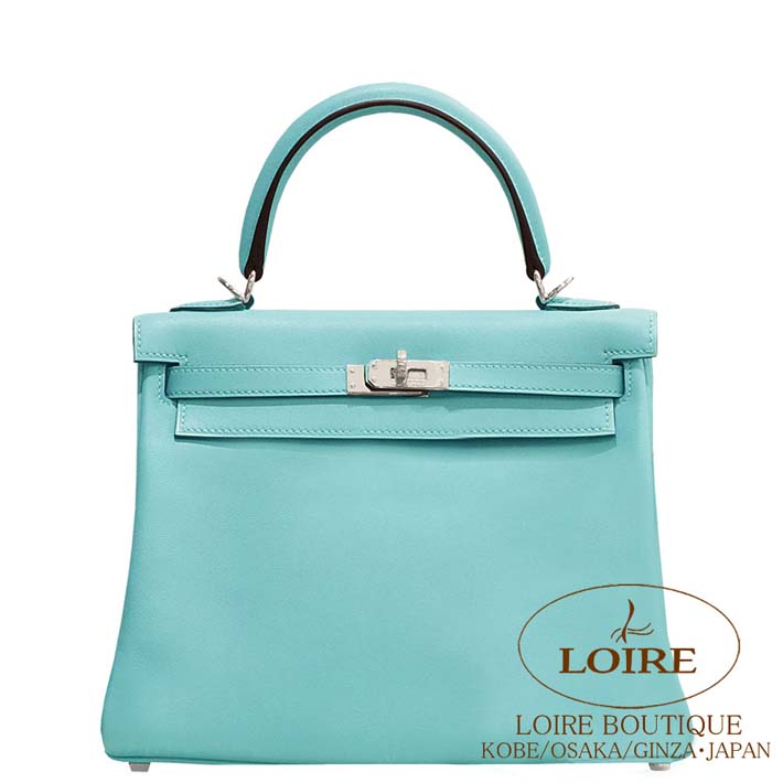 HERMES Kelly 25cm Retourne Swift BLUE ATOLL(3P) Silver hardware