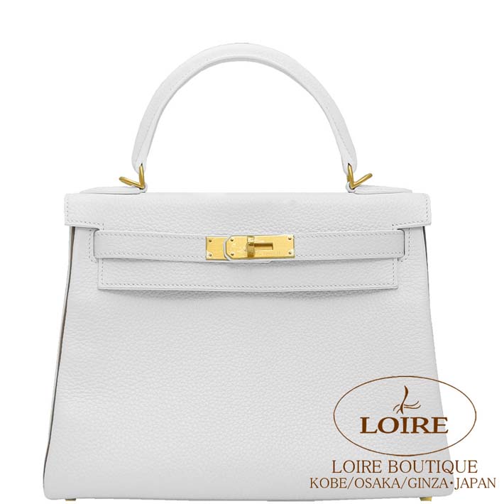 HERMES Kelly 28cm Retourne Personal Order Clemence BLANC(01)/ETOUPE(18) Matte Gold hardware