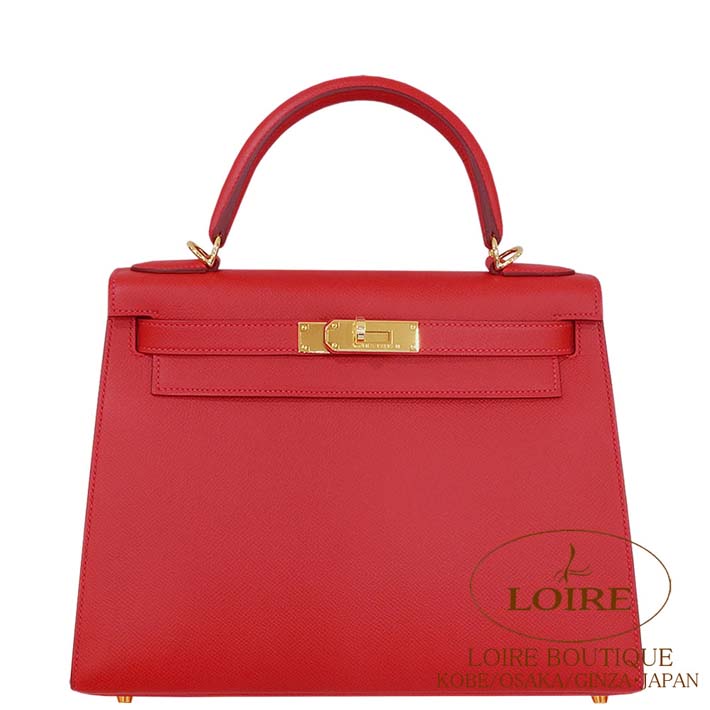 エルメス ケリー 28cm 外縫 エプソン ルージュカザック ゴールド金具