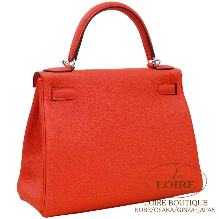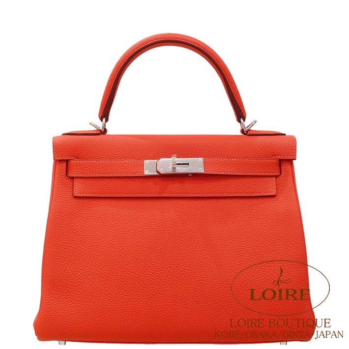 HERMES Kelly 28cm Retourne Togo ROUGE PIVOINE(2R) Silver hardware