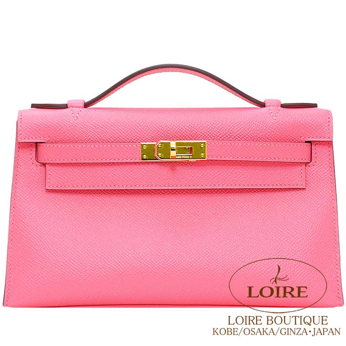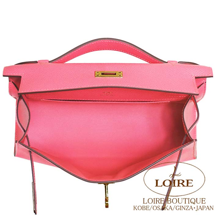 HERMES Pochette Kelly Epson ROSE AZALLE(8W) Gold hardware