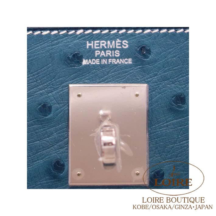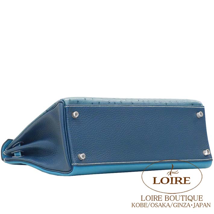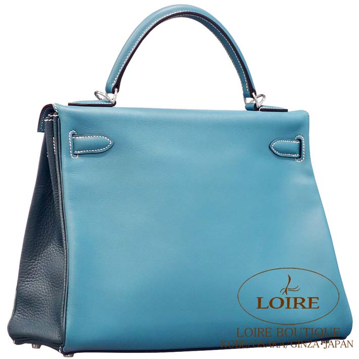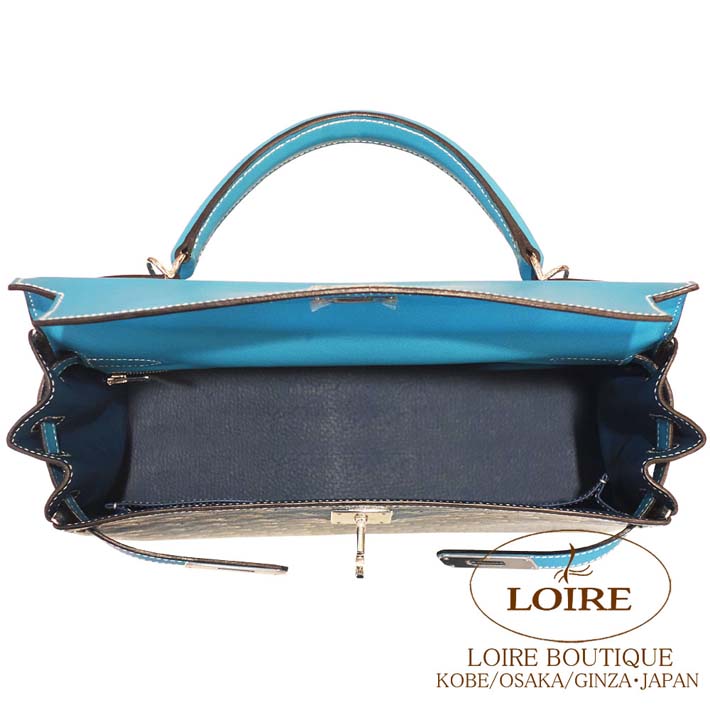 HERMES Kelly 32cm Retourne Ostrich/Swift/Clemence COBALT(7C)/ TURQUOISE(7B)/CORVERT(1P) Silver hardware