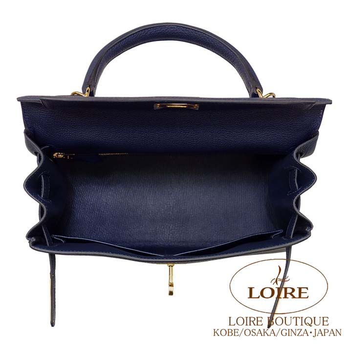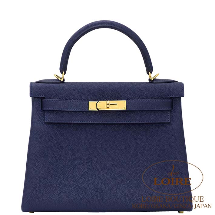 エルメス ケリー 28cm 内縫 トゴ ブルーニュイ ゴールド金具