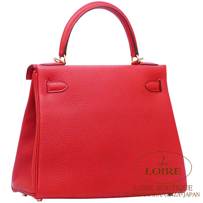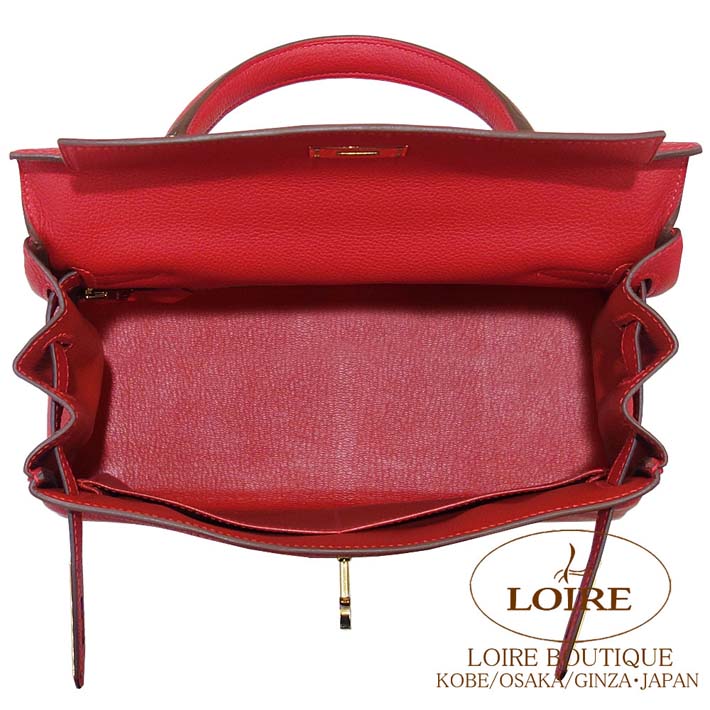 HERMES Kelly 28cm Retourne Togo ROUGE VIF(53) Gold hardware