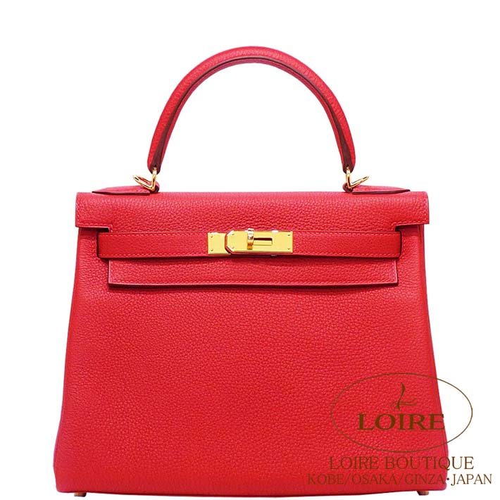 エルメス ケリー 28cm 内縫 トゴ ルージュヴィフ ゴールド金具