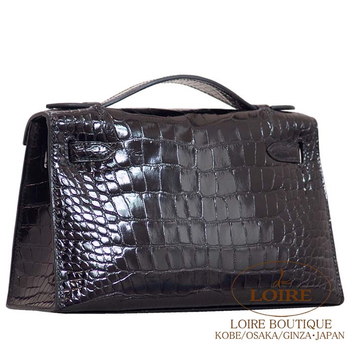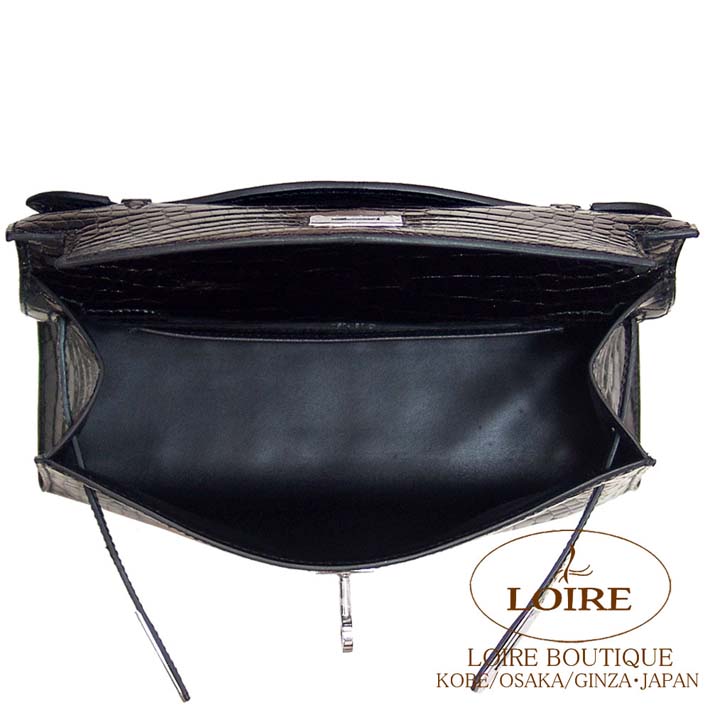 HERMES Pochette Kelly Alligator NOIR(89) Silver hardware