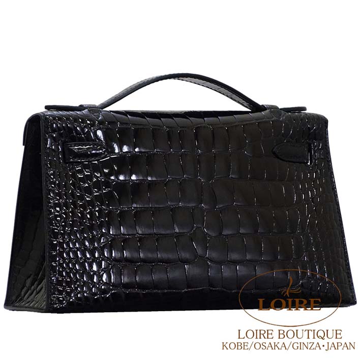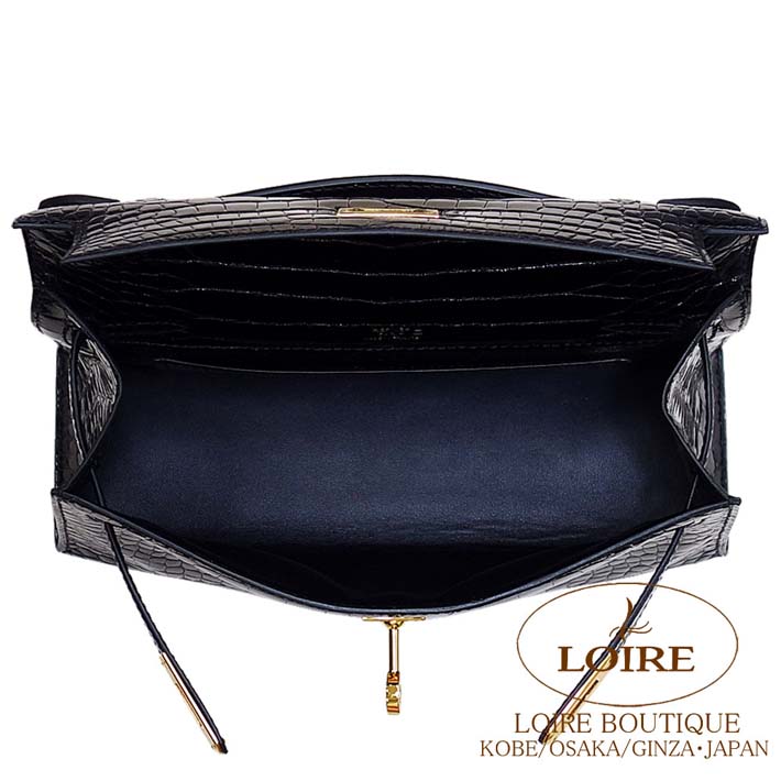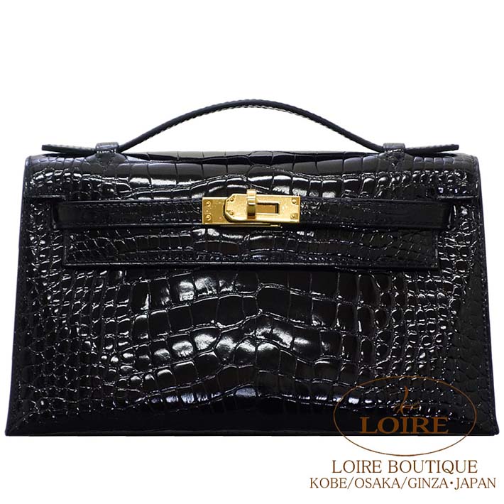 HERMES Pochette Kelly Alligator NOIR(89) Gold hardware