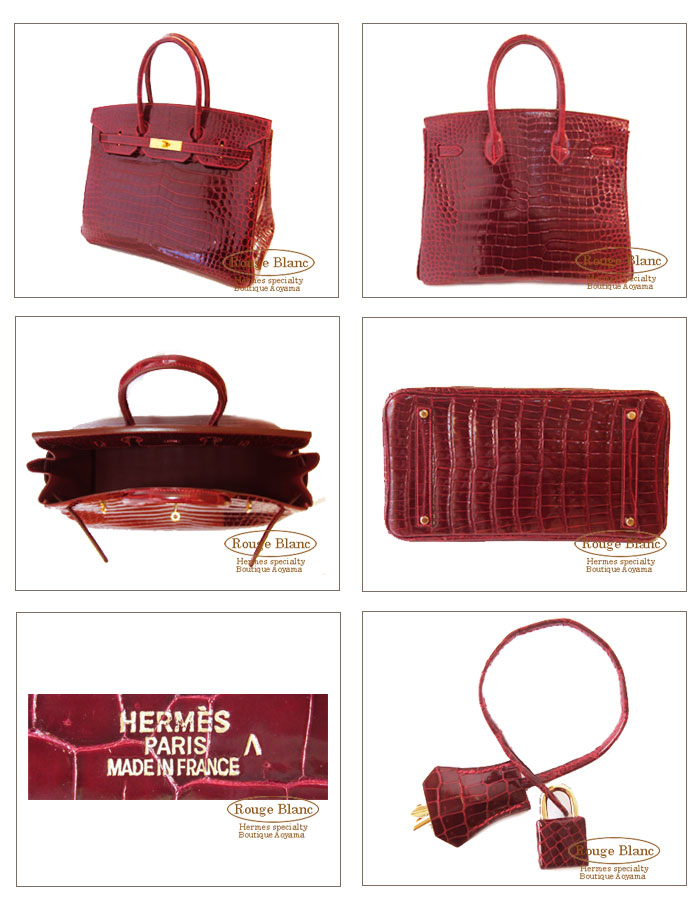 HERMES Birkin35 Rouge H Crocodile Porosus Lisse