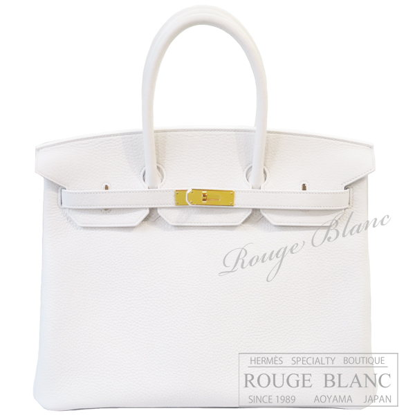 HERMES Birkin35 White Taurillon Clemence Gold Buckle