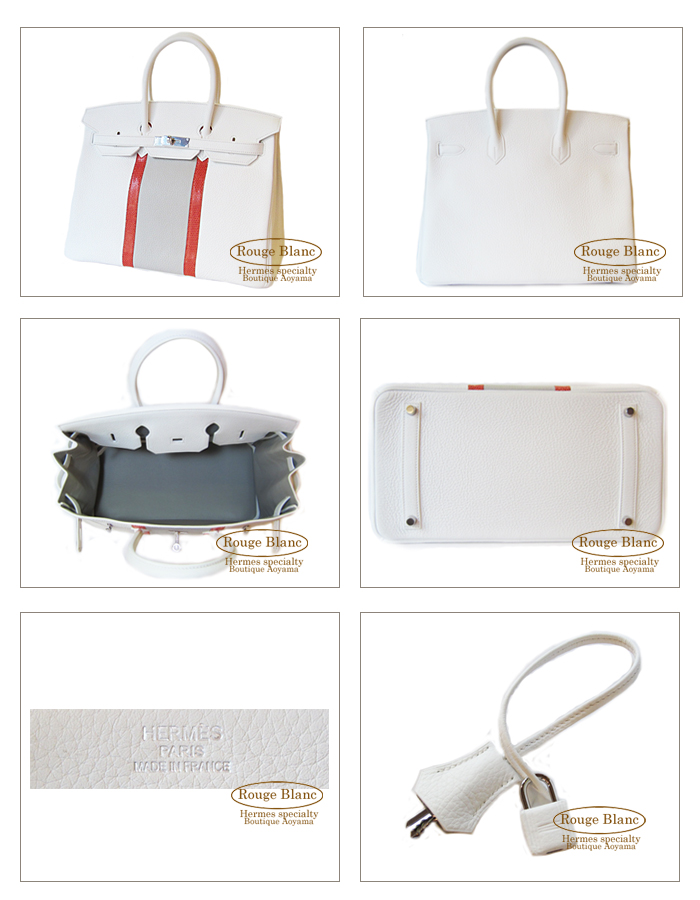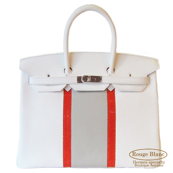 HERMES BirkinClub35 White×Sanguine×Pearl grey Silver Buckle 【NEW】