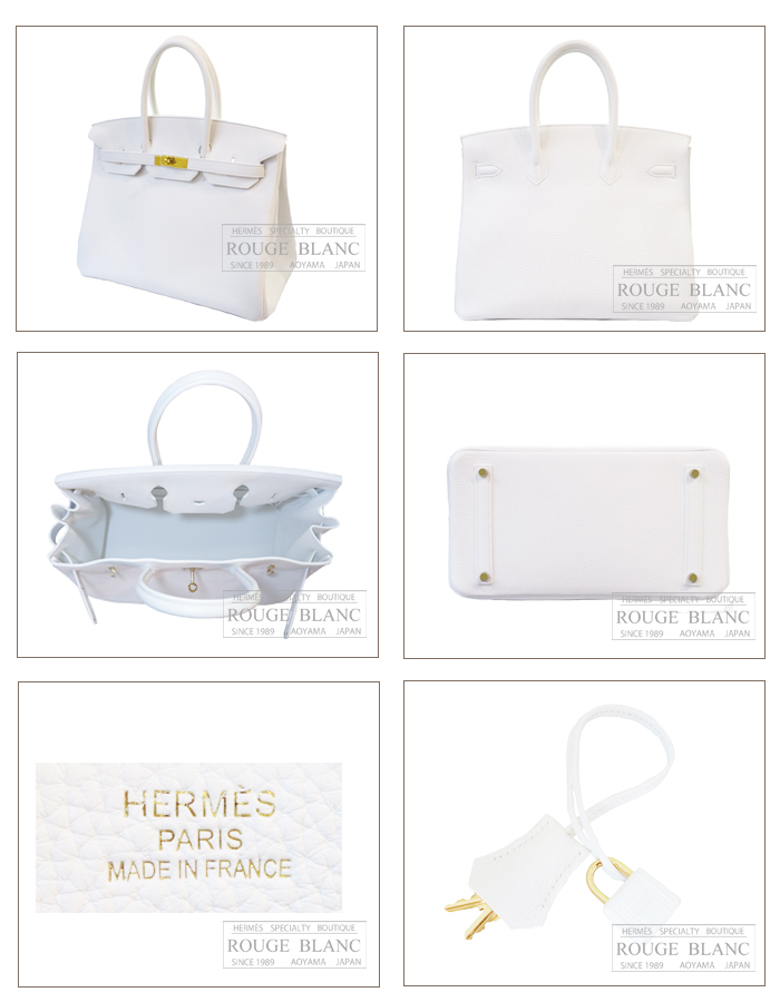 HERMES Birkin35 White Taurillon Clemence Gold Buckle 【NEW】