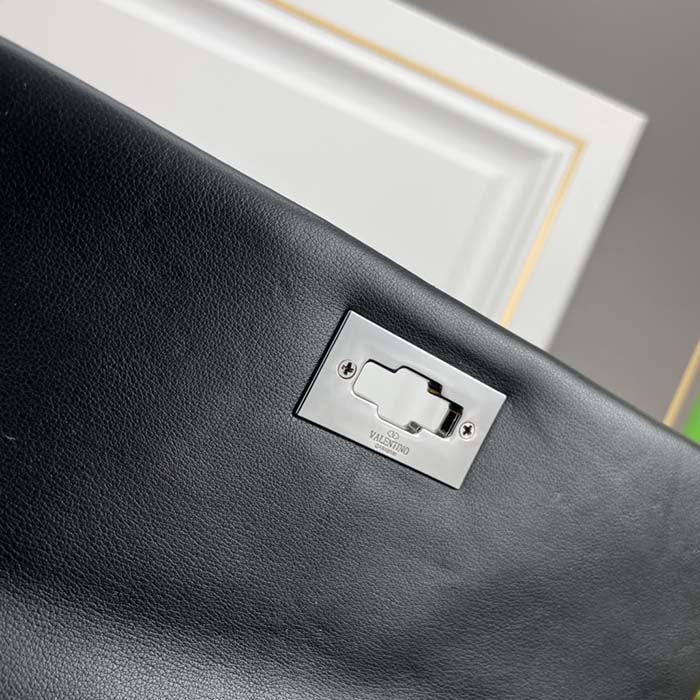 最高級ヴァレンティノスーパーコピー ヴァレンティノバッグコピー ミディアムローマンスタッドチェーン付きデニムショルダーバッグ 3W2B0I82CEK_0NO ブラック シルバー金具 ValentinoBAG033