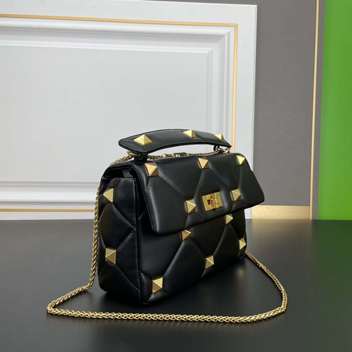 最高級ヴァレンティノスーパーコピー ヴァレンティノバッグコピー ミディアムローマンスタッドチェーン付きデニムショルダーバッグ 3W2B0I82CEK_0NO ブラック ゴールド金具 ValentinoBAG039
