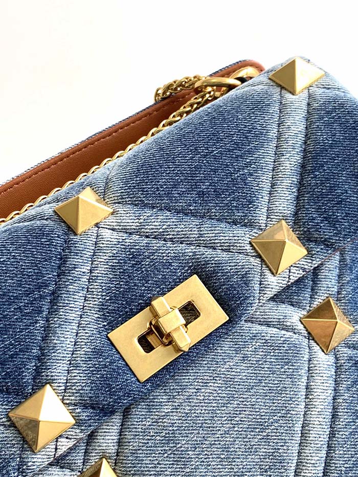 最高級ヴァレンティノスーパーコピー ヴァレンティノバッグコピー ロックスタッズ スパイク エンブロイダリー スモール デニムバッグ 4W2B0123ARN_YG7 デニム ゴールド金具 ValentinoBAG118
