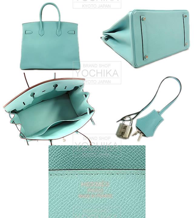 Very fresh and young Birkin is received! The color "Bleu Atoll" of the spring of 2015 summer color. It becomes the refreshing, clear color according to the photograph reflecting the image of the color of the atoll from the sky. The combination of Bleu Atoll and silver metal fittings which it is gorgeous, and is refreshing is very attractive. Because material is durable Epsom which we do not have to worry about the getting out of shape, I can use it habitually for a long time. Large-capacity 35cm that the size is delivered to the A4 size. It is good to surround Twilly to a handle! It is good I run Carre casually, and to have! It is good to attach a bag charm! Only Birkin is born in the world by arrangement only for you! Please examine it at this opportunity.