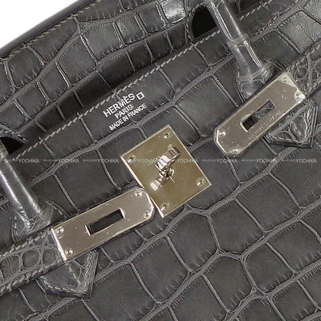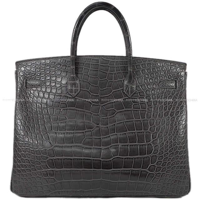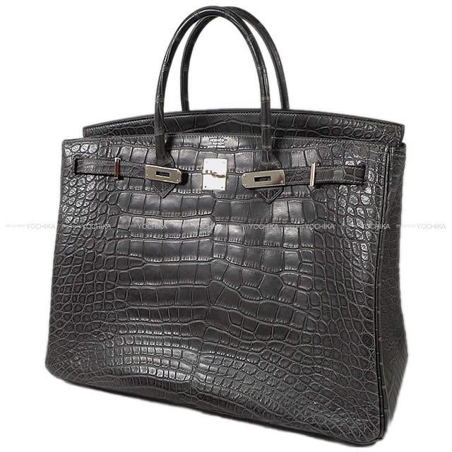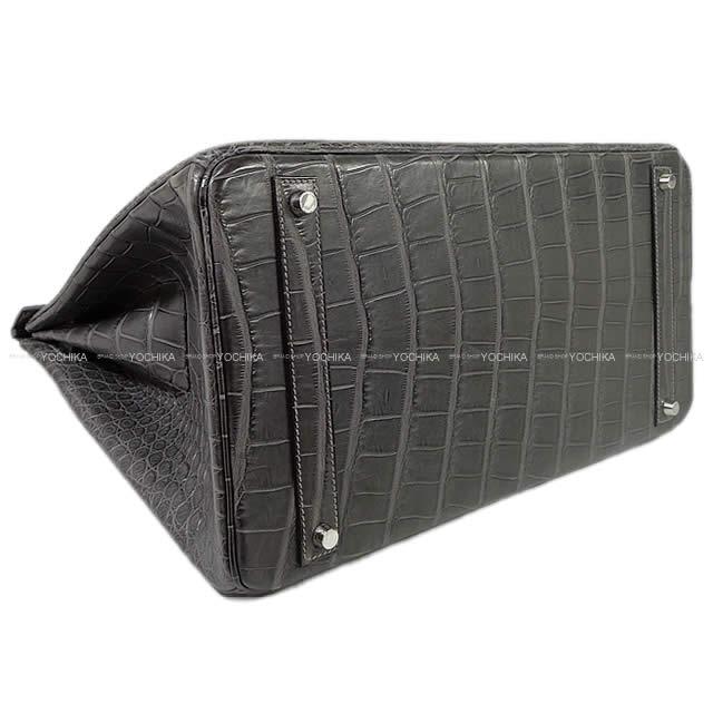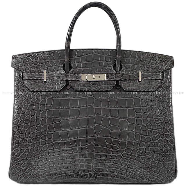 HERMES エルメス ハンドバッグ バーキン40 グラファイト クロコダイル アリゲーターマット シルバー金具 新品